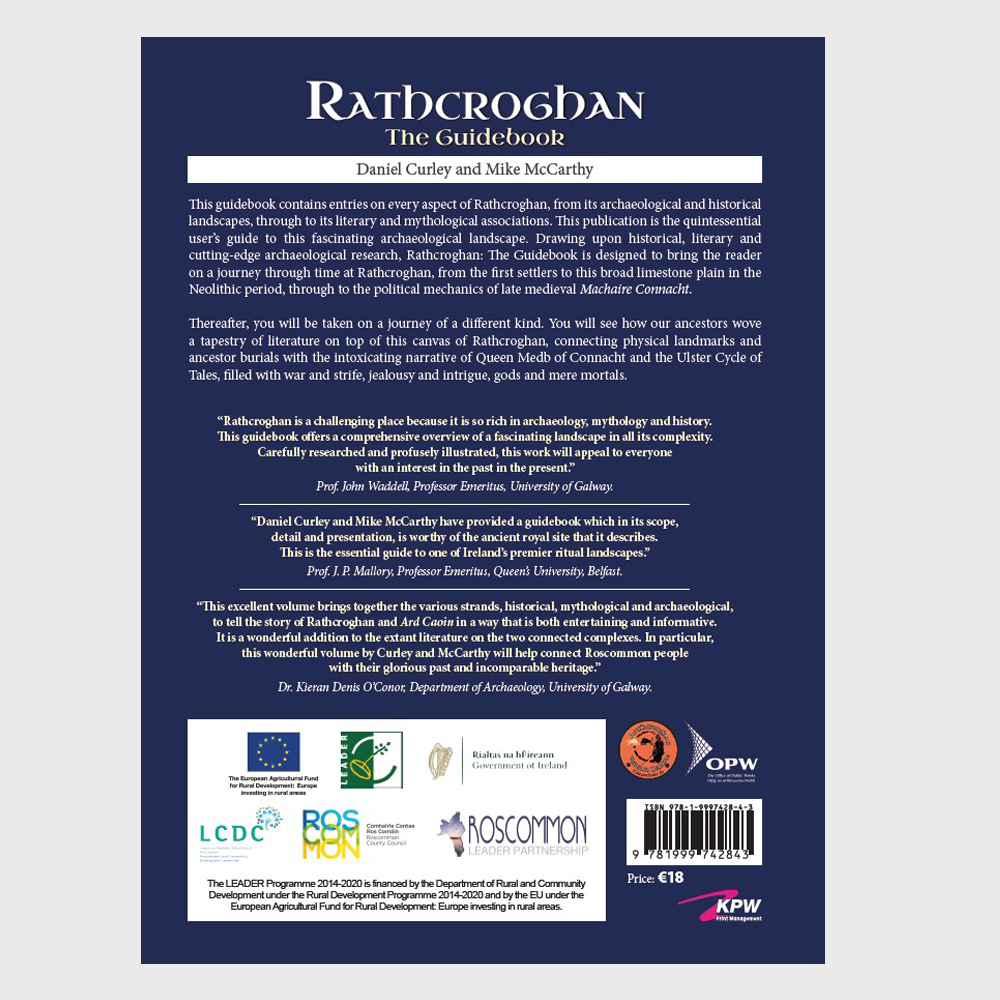 This second edition of the Rathcroghan Guidebook contains updated and new imagery and text alongside entries on every aspect of Rathcroghan, from its archaeological and historical landscapes, through to its literary and mythological associations. This publication is the quintessential user’s guide to this fascinating archaeological landscape. Drawing upon historical, literary and cutting-edge archaeological research, Rathcroghan: The Guidebook is designed to bring the reader on a journey through time at Rathcroghan, from the first settlers to this broad limestone plain in the Neolithic period, through to the political mechanics of late medieval Machaire Connacht.